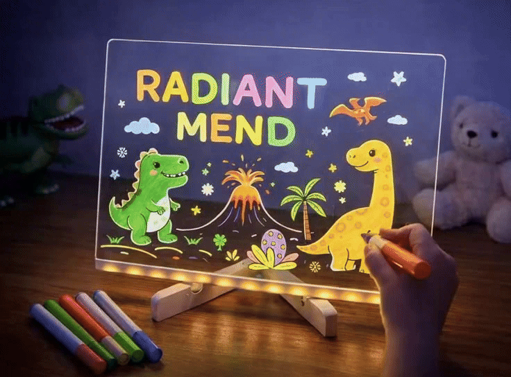 Enjoy endless creativity on a vibrant, erasable glowing canvas that brightens your space without the hassle of constantly changing batteries.